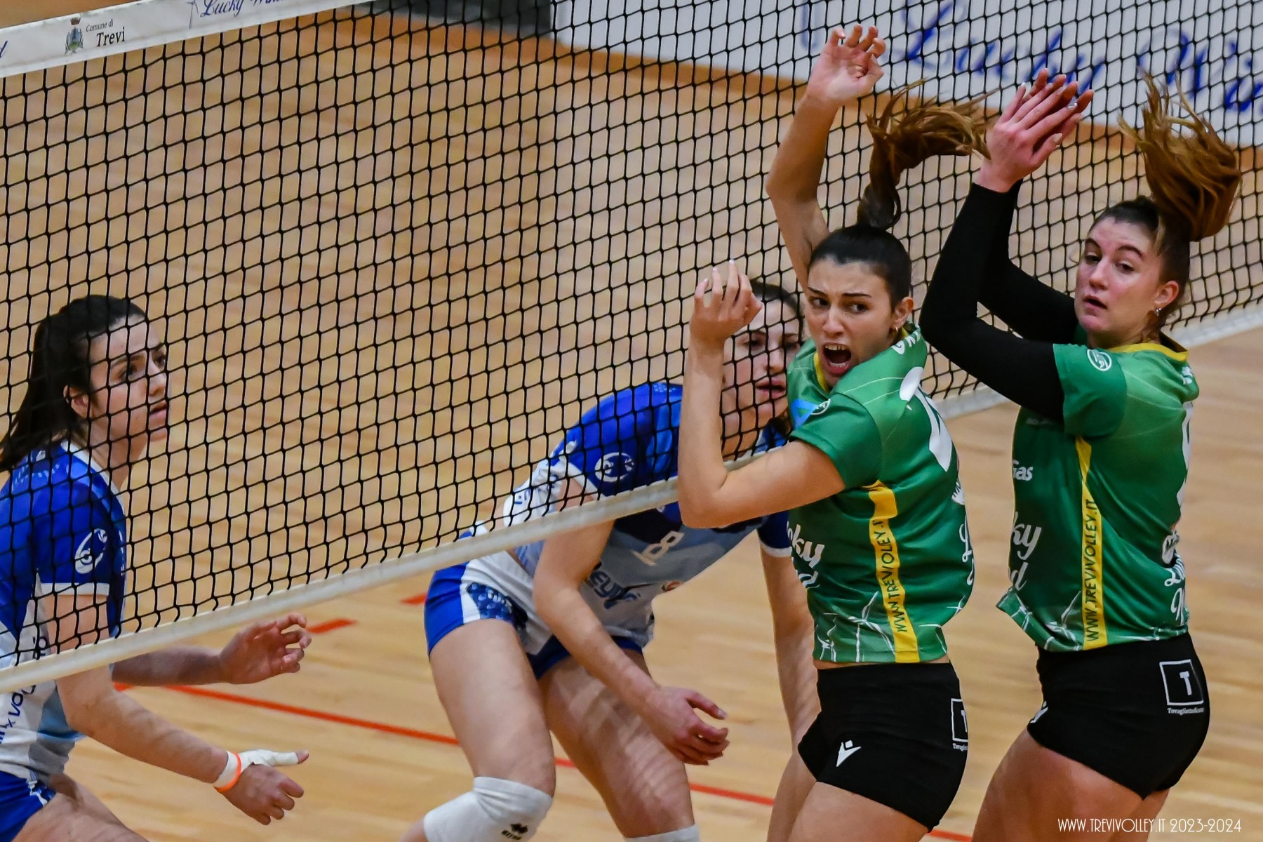 Lotta tanto, ma alla fine si ritrova con un pugno di mosche la compagine trevana che, soprattutto nel primo set, spegne la luce sul più bello, dopo essere stata avanti 20-15. A dispetto della classifica il PalaGallinella regala ancora una volta un match in cui le differenze in campo durante il gioco non appaiono, per poi ricomparire miracolosamente nei momenti decisivi.