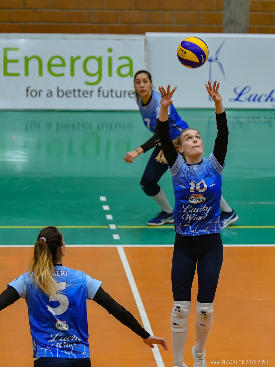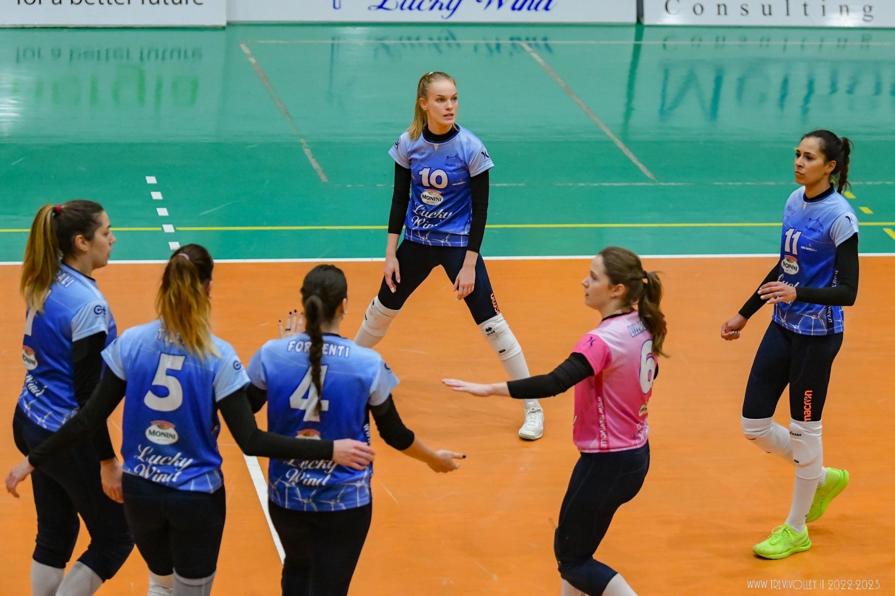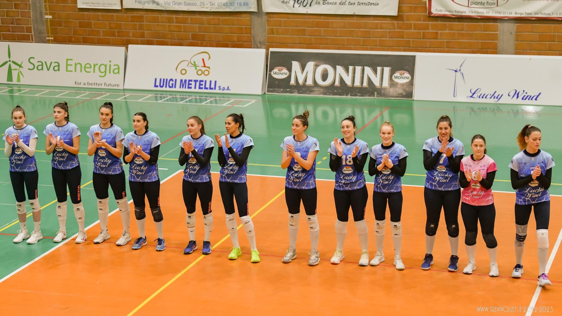 “Non mollare mai, perché questo è solo il luogo e il momento in cui la marea cambierà”.Harriet Beecher StoweUna Lucky Wind Trevi dai due volti soffre, va sotto due a zero, non molla, si rialza, pareggia, va sotto di nuovo 10-13 al Tie break e alla fine risorge vincendo e portando a casa due punti che dopo il due a zero ospite sembravano insperati e soprattutto tiene il passo con le prime in zona Playoff.Lucky Wind che scende in campo con Giordano/Capezzali sulla diagonale di posto due, Castellucci e Formenti le schiacciatrici, Tiberi e Canuti al Centro con Lillacci Libero.Primo parziale che si rivela equilibrato fino a metà gioco (13-13), poi sono le ospiti, complice anche qualche errore gratuito delle padrone di casa, a prendere quel break di vantaggio da conservare e portare fino alla fine (22-25).Nel secondo periodo di gioco sono ancora le ragazze di Coach Messi, dopo un avvio ancora equilibrato (8-8), ad avere il pallino del gioco, mentre le biancoazzurre si rivelano ancor più fallose del parziale precedente (16-22)ed due a zero per le marchigiane (16-25).Terzo set che, dopo il solito avvio equilibrato, vede la Lucky Wind interpretare la partita in maniera diversa, più reattiva, più efficace nel connubio muro/difesa e, soprattutto, molto meno fallosa. Va da se che la combo di tutte queste situazioni porta ad un risultato diametralmente opposto ai primi due parziali. E così le ragazze di Coach Ricci accorciano le distanze (25-18).Anche il quarto parziale segue il copione dei precedente, con una ritrovata Lucky Wind ad imporre il proprio gioco ed una Corplast molto più fallosa che nei primi due parziali.E così, unica conclusione degna per una partita del genere è il Tie Break (25-20).Tie break che vede le ospiti partire arrembanti ed una Lucky Wind sulle prime un po’ arrendevole e così al cambio di campo, è la Corplast a mettere il muso avanti di due lunghezze (6-8). Corplast che sembra essere più continua, mantenendo e incrementando leggermente quella piccola lunghezza di vantaggio sino a ridosso della conclusione (10-13). Una Lucky Wind che non molla mai, però con un colpo di reni riesce ad impattare sul filo di lana (14-14).Ai vantaggi inizia una partita tutta a se, dove chi ha avuto più nervi saldi e voglia di vincere è riuscito a prevalere. E non poteva essere che la Lucky Wind, che dopo aver recuperato dallo zero due, ha voluto regalare al pubblico di casa una vittoria tanto bella quanto sofferta (18-16).Classifica che adesso vede la Lucky Wind al quinto posto ed in piena lotta per un posto ai Playoff.Prossimo appuntamento previsto per sabato 10 Dicembre, alle ore 20.30, alla Palestra Guarini di Modena contro Volley Modena.