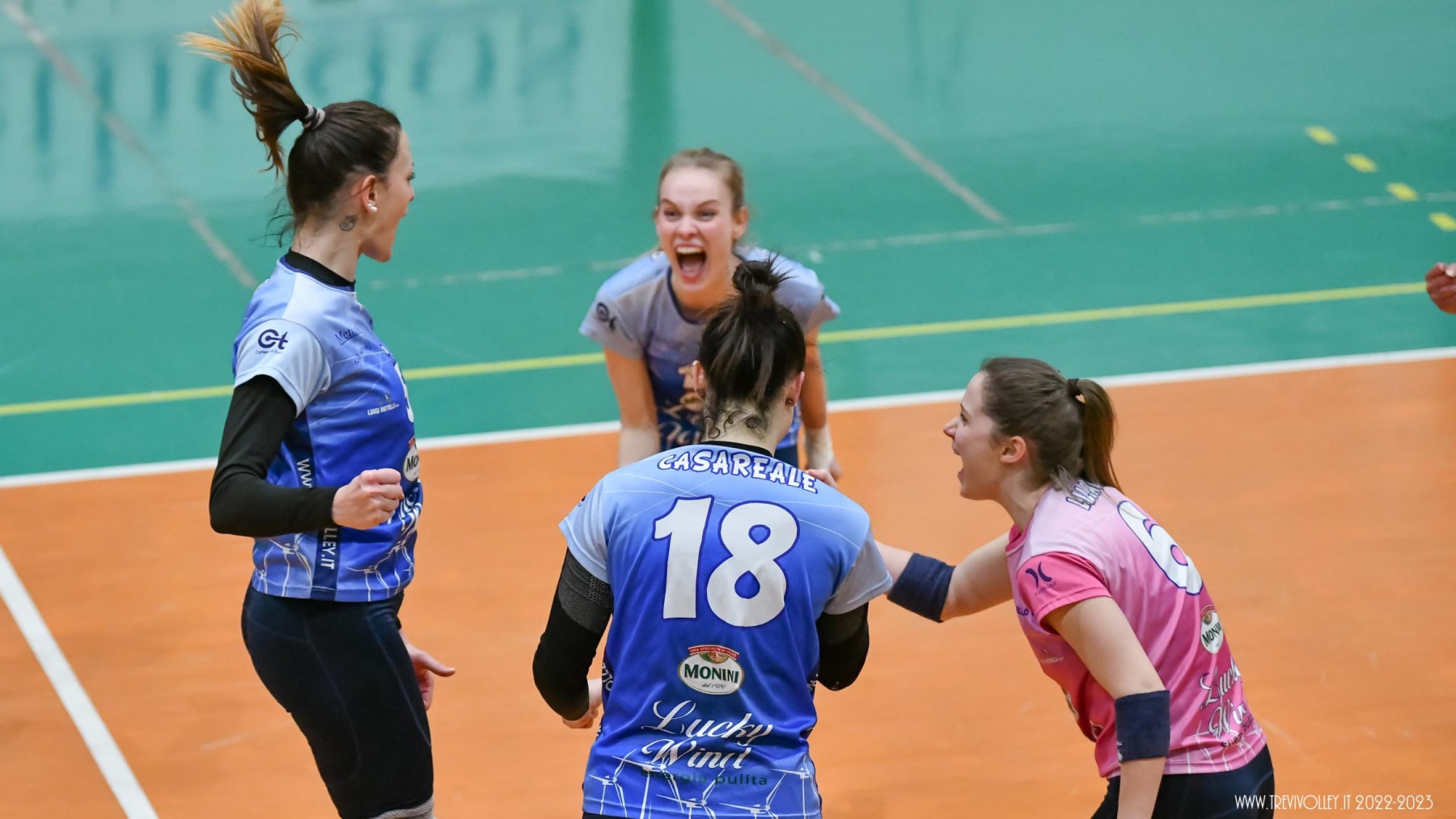 Serviva una prestazione convincente alla Lucky Wind Trevi per ritrovare serenità e punti in classifica.I presupposti non erano dei migliori visto anche l’infortunio, l’ennesimo stagionale, capitato questo giro alla centrale Canuti.Se si somma al tutto che davanti ti ritrovi la seconda forza del campionato, le speranze sembrano poche.Ma si sa che molto spesso nelle difficoltà si riesce a tirare fuori delle forze nuove che nemmeno si sapeva di avere e così le biancozzurre tirano fuori dal cilindro una delle migliori prestazioni stagionali.Se non addirittura la migliore.Pronti via è subito la Tenaglia Altino a cercare di far vedere che non è seconda a caso e l’allungo che prende lo dimostra (11-16).Panchina trevana che arresta il gioco e molto probabilmente da quel momento cambia l’inerzia totale della partita.Con un parziale di dieci a quattro grazie al turno impeccabile al servizio di Tiberi e l’abilità nel giocare con le mano del muro di Casareale la Lucky Wind si riporta sotto e opera il sorpasso (21-20) per poi allungare e chiudere il primo parziale (25-22).Secondo periodo di gioco che vede, sulle ali dell’entusiasmo, sempre le ragazze di Mister Ricci a tenere il pallino del gioco (8-3), riuscendo a tenere le ospiti sempre a distanza di sicurezza nei momenti topici del set (16-8 e 21-14). Soltanto nel finale tentano la rimonta le ragazze di Mister Gagliardini, ma la distanza è ormai troppa e la Lucky Wind vola sul due a zero.Stesso copione che si ripete anche nel terzo set con le padrone di casa in costante dominio e le ospiti che in questo caso non riescono neanche la rimonta finale (25-19).Una gran prestazione di squadra in cui alle già citate Tiberi e Casareale va rimarcata l’imprevedibilità nel variare il gioco di Giordano, la variabilità in attacco di Castellucci e Capezzali, la reattività di Lillacci e ultima ma non ultima la cattiveria di Della Giovanpaola. Una miscellanea di tanti ingredienti che ha portato a mettere in tasca questi tre punti.Tre punti di vitale importanza in un girone dove la classifica si fa sempre più corta ed ingarbugliata, in cui nove squadre, dalla terza alla terzultima, sono raggruppate in appena otto punti.Prossimo appuntamento previsto per sabato 25 Marzo, sempre al PalaGallinella, alle ore 18 in un altro scontro di fuoco contro Cesena che, in attesa di giocare contro Forlì, occupa il terzultimo posto.