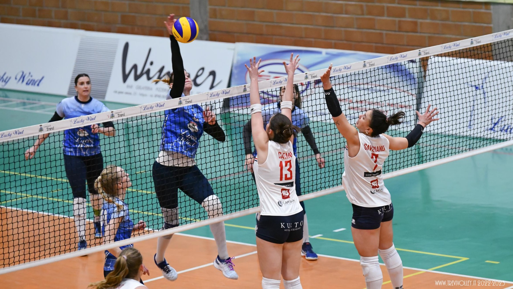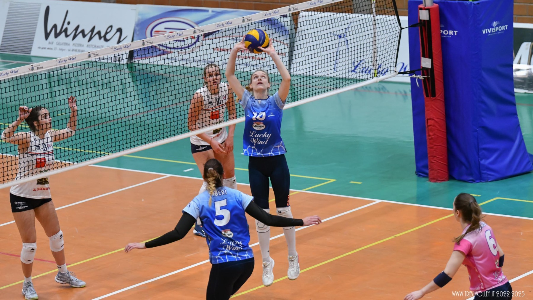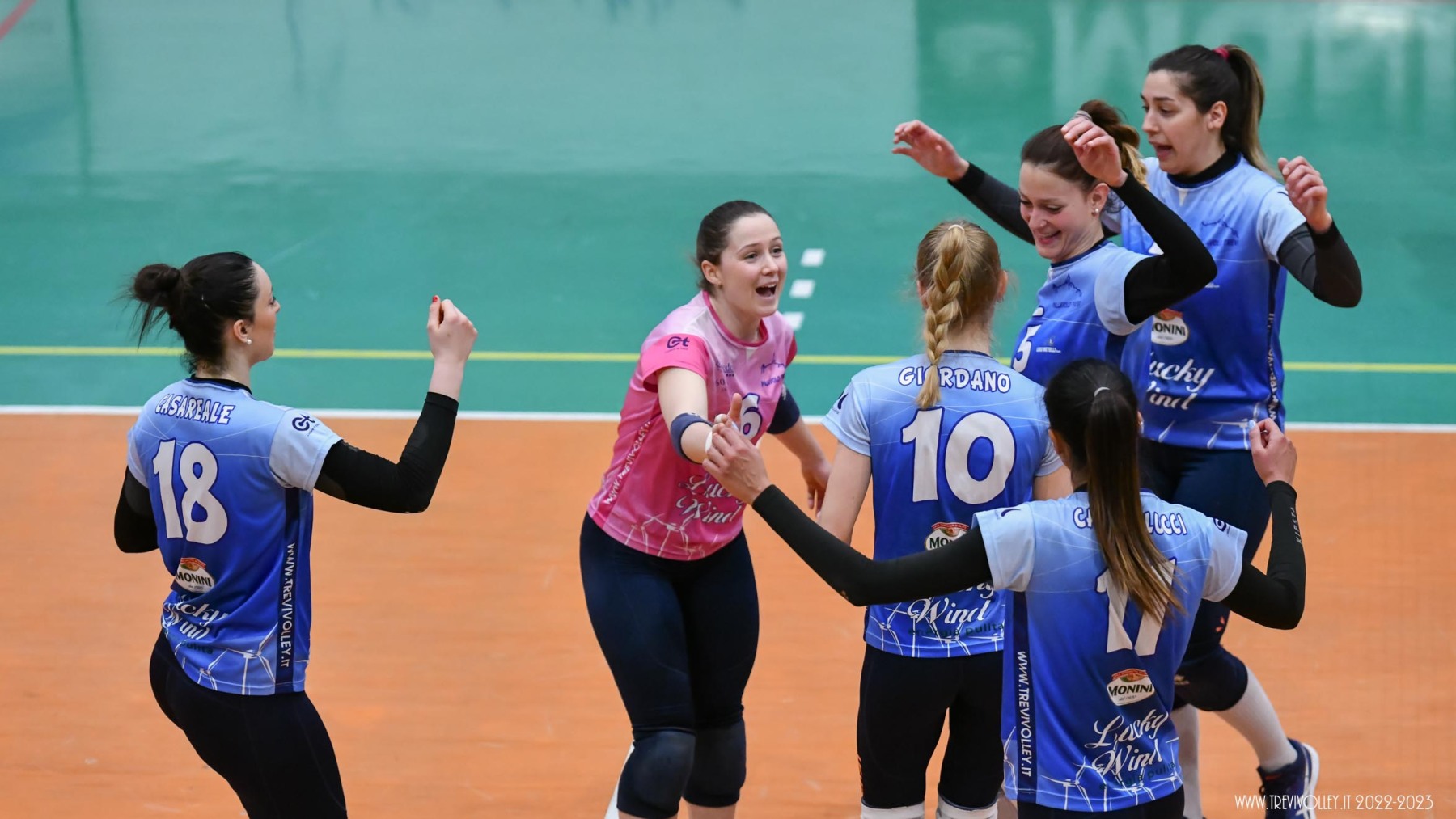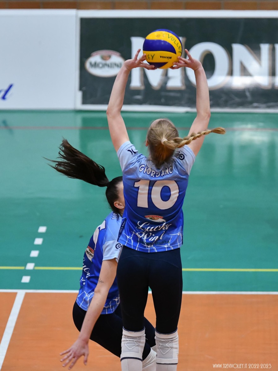 LUCKY WIND TREVI: Castellucci 21, Canuti 17, Tiberi 17, Capezzali 12, Giordano 8, Formenti 7, Lillacci (L1), Casareale 3, Ba 2, Radi, Della Giovanpaola, Proietti, Porcu, Coresi (L2). All. Gian Luca Ricci e Michele Stramaccioni.