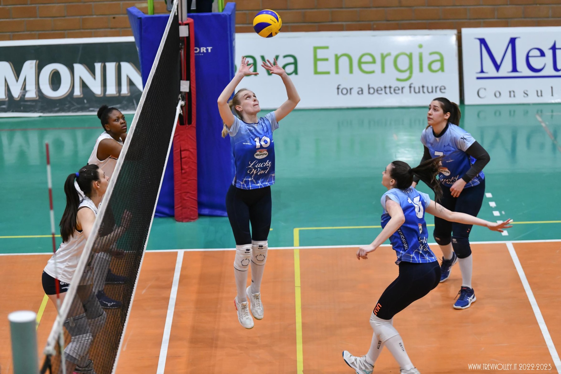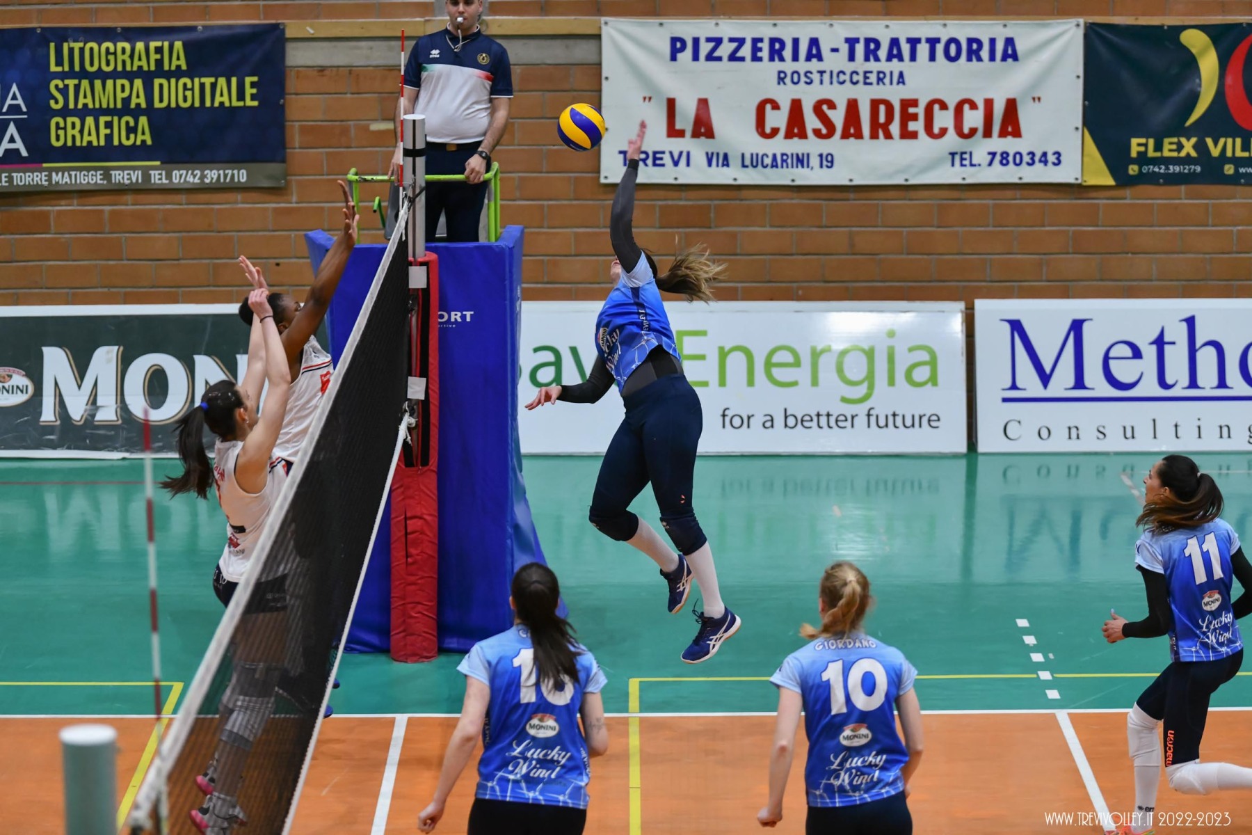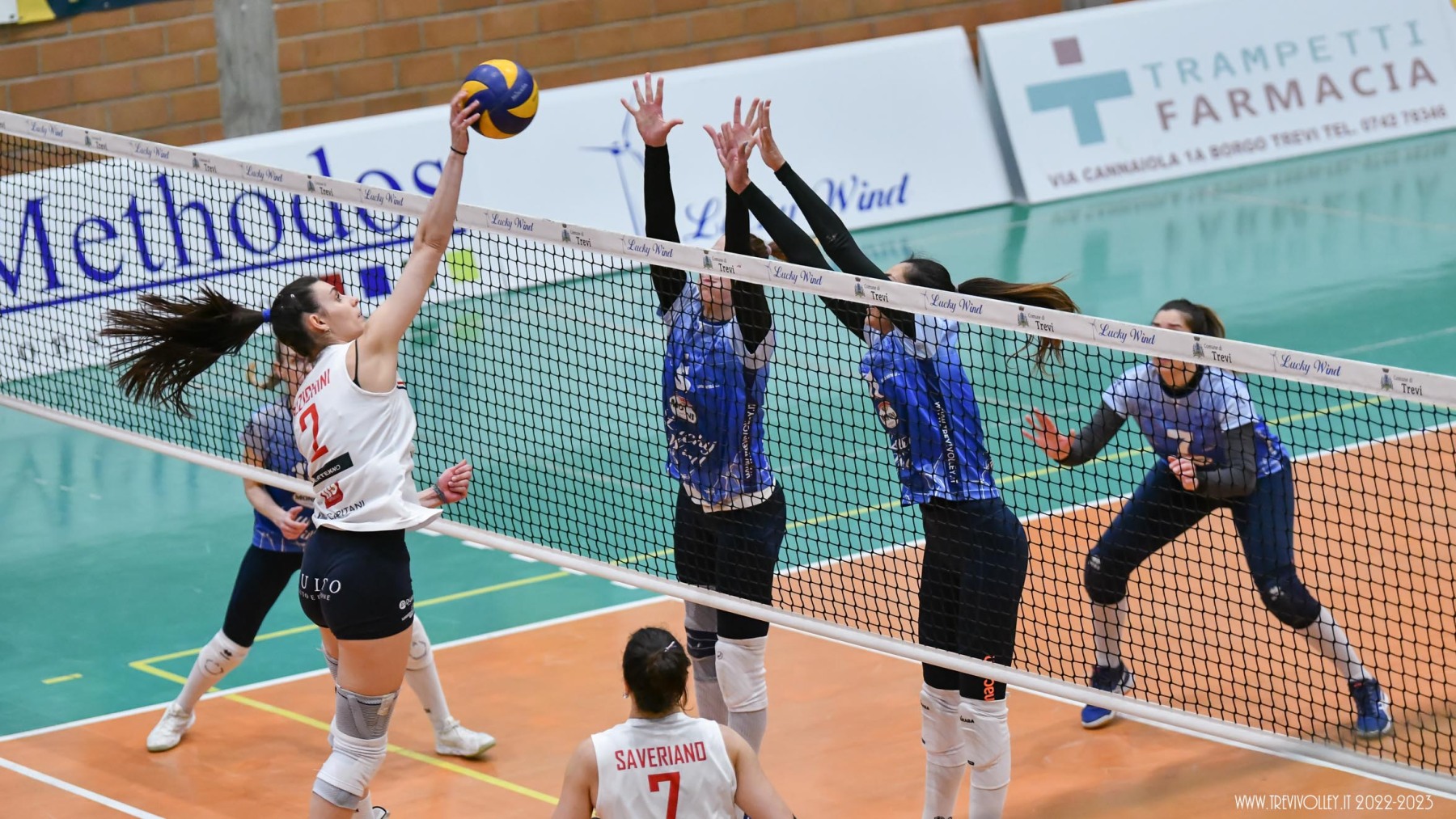 LUCKY WIND TREVI: Castellucci 21, Canuti 17, Tiberi 17, Capezzali 12, Giordano 8, Formenti 7, Lillacci (L1), Casareale 3, Ba 2, Radi, Della Giovanpaola, Proietti, Porcu, Coresi (L2). All. Gian Luca Ricci e Michele Stramaccioni.