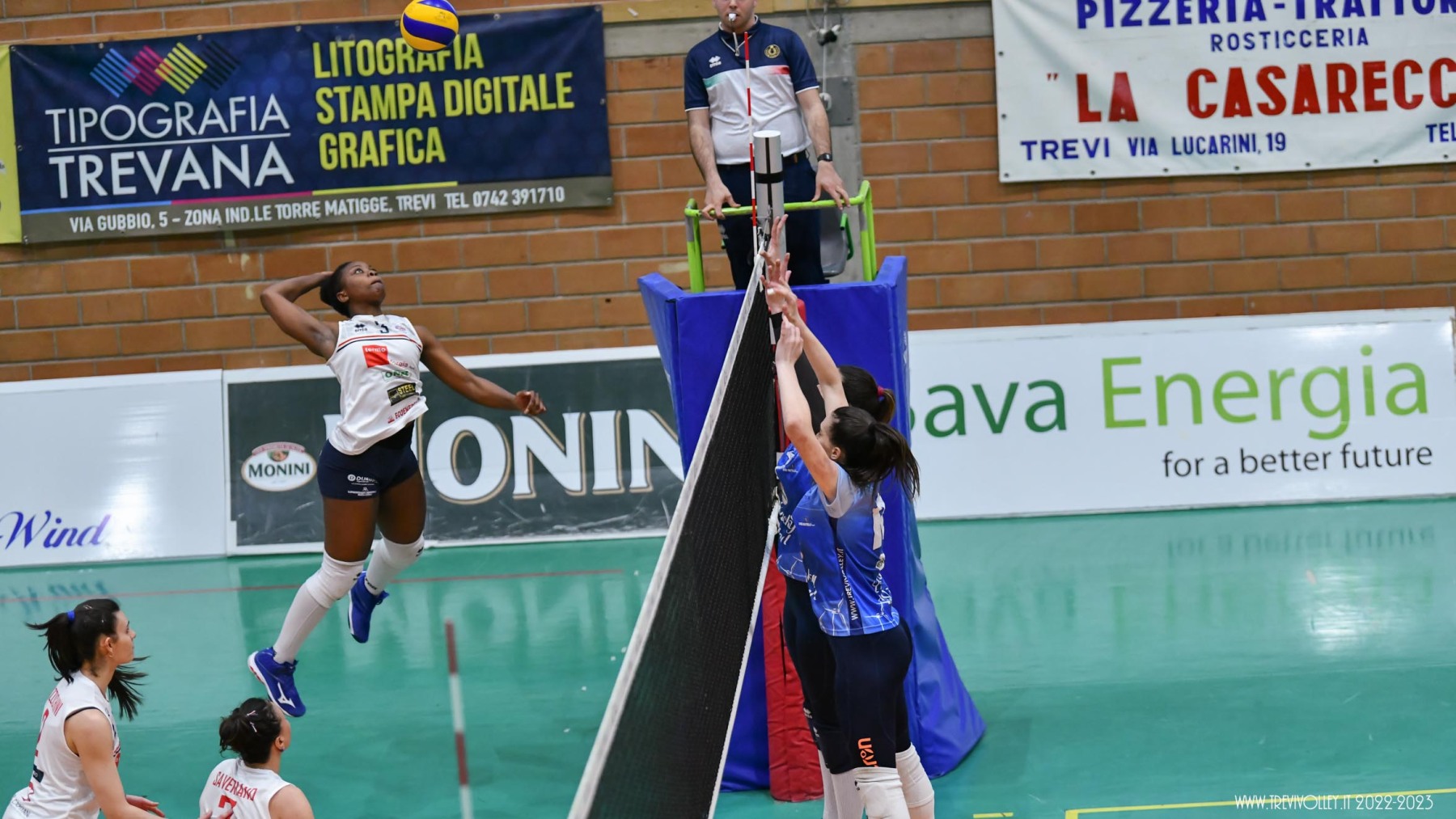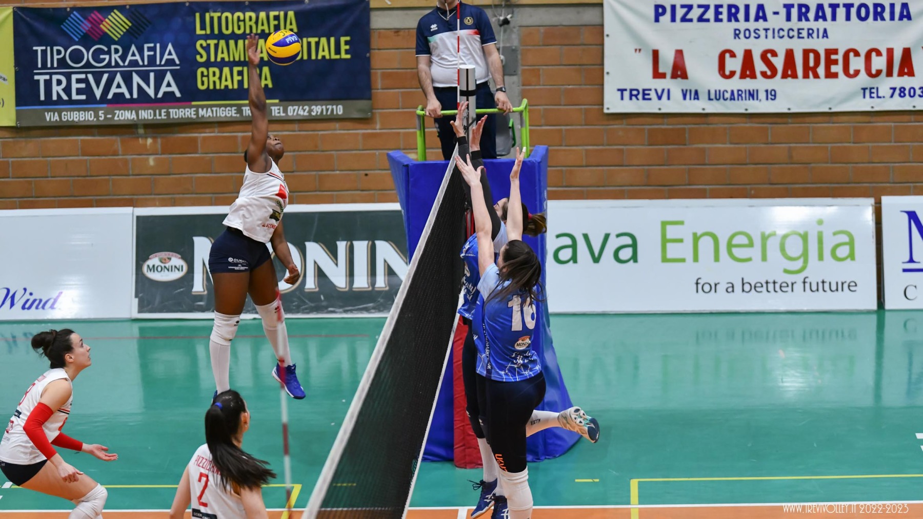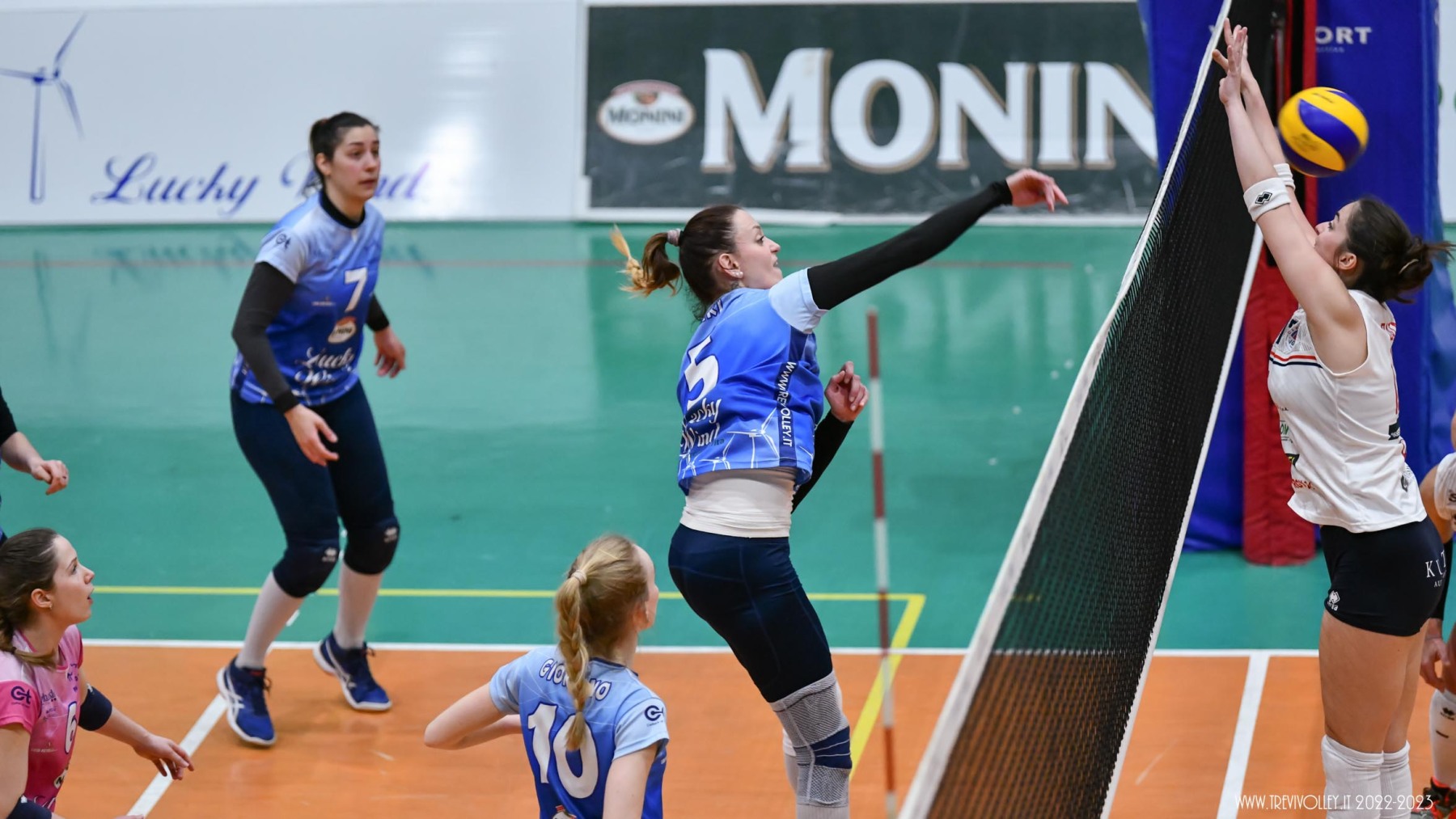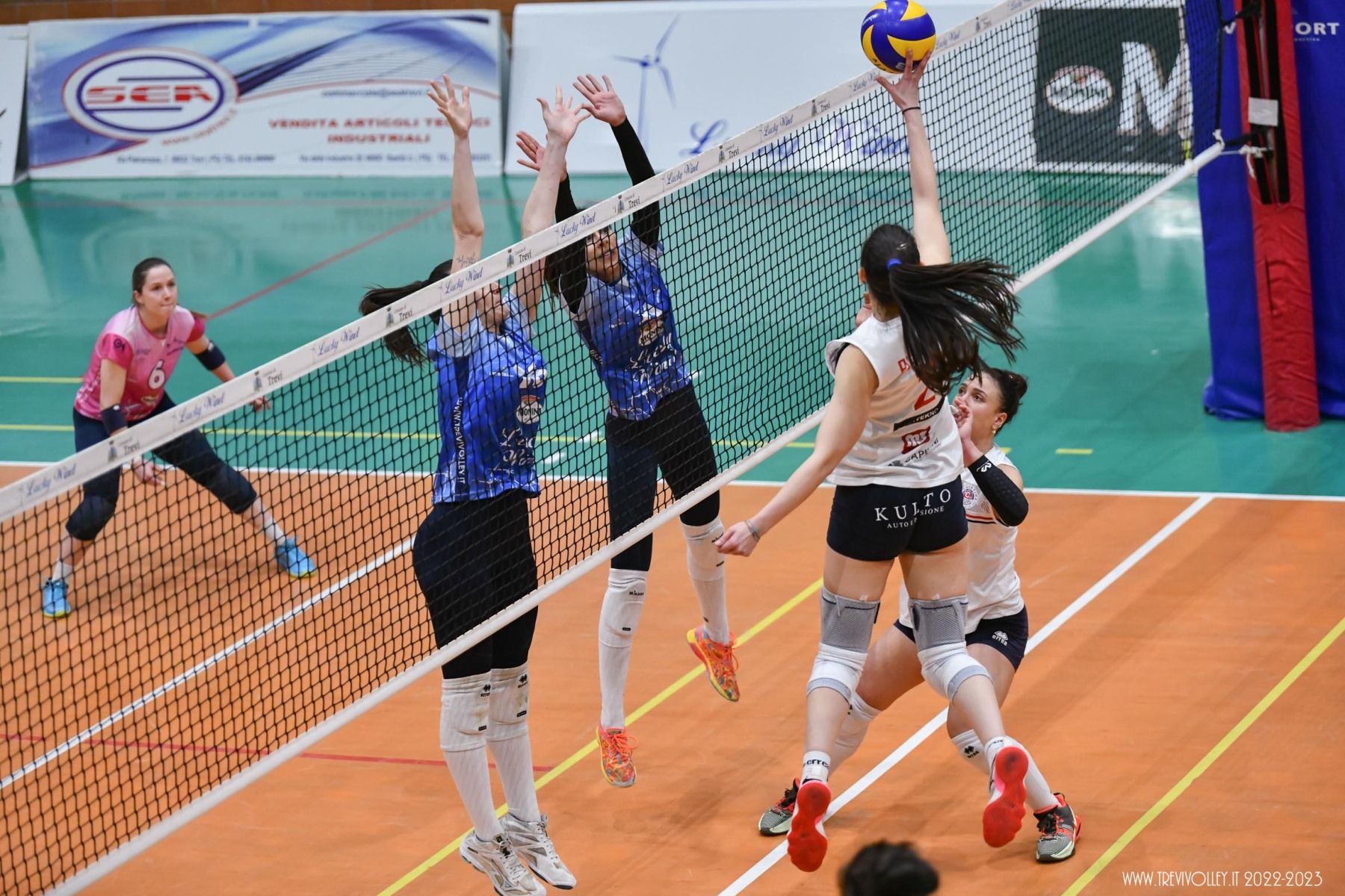 LUCKY WIND TREVI: Castellucci 21, Canuti 17, Tiberi 17, Capezzali 12, Giordano 8, Formenti 7, Lillacci (L1), Casareale 3, Ba 2, Radi, Della Giovanpaola, Proietti, Porcu, Coresi (L2). All. Gian Luca Ricci e Michele Stramaccioni.