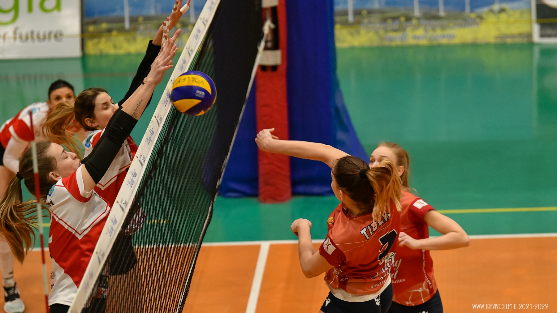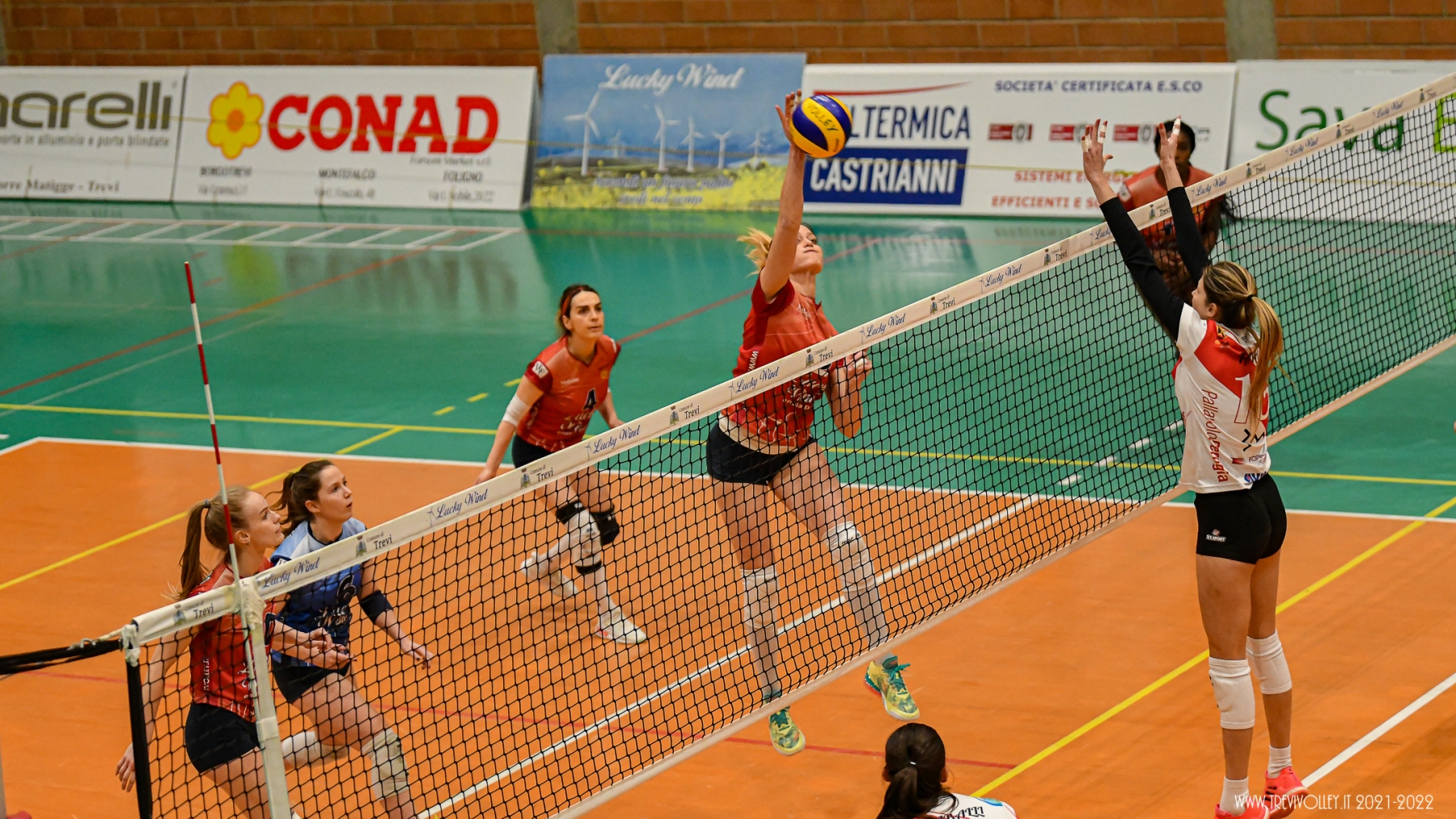 Il derby Umbro Perugia- Trevi, big match del 19° turno del campionato di serie Bi gir. E, è stato all’altezza delle aspettative. Alla vigilia ci si aspettava un incontro tirato, equilibrato, giocato davanti ad una bella cornice di pubblico. E così è stato: è stato un match giocato sul filo dell’equilibrio tra due squadre che hanno dimostrato tutta la loro forza e che diranno la loro fino alla fine per un piazzamento play off. Ha vinto Perugia 3 a1, ma la differenza tra i parziali è stata minima dove i particolari hanno fatto la differenza. Con questa vittoria la 3M consolida la prima posizione in classifica con 34 punti a + 5 da Pomezia in attesa della partita domenicale di Castelfranco; la Lucky conferma il 5° posto in classifica con 1 partita in meno rispetto alla capolista. Match scorer della partita sono state da una parte Castellucci con 20 punti che conferma il suo momento di grazia e Tiberi con 8 punti. Menzione particolare anche per la difesa, dove la Ameri ha dato un grande contributo con dei recuperi che ha entusiasmato il pubblico. Dall’altra parte della rete segnaliamo i 14 punti della Traballi ed i 13 della Giugovaz. Ottima prova anche qui della difesa, dove il libero, Beatrice Rota, ha mostrato tutta la sua forza. Davanti ad una cornice di pubblico degna di un derby che ha spinto la squadra di casa fin dai primi momenti dell’incontro e sulle note di Imagine, canzone simbolo per la pace nel mondo, la partita inizia nel segno dell’equilibrio. Fin dai primi punti, si nota due caratteristiche che segneranno la partita: difese molto attente che non consentono di far cadere palloni semplici e azioni lunghe a favore dello spettacolo. Prova la fuga la squadra di casa, ma viene subito raggiunta dalla 3M sul 7 pari. A metà del set è la squadra ospite a provare l’allungo portandosi sul 16 a 12. Ma un muro della Borelli e un ace sporco di Pioli riporta la contesa in parità sul 18 pari. Si va avanti punto su punto fino al 21 pari, quando 3 errori in attacco della Lucky porta a set point la Pallavolo Perugia (24-21). Un attacco della Tiberi prova ad allungare la durata del set, ma un attacco di Perugia pone fine al parziale (22-25). Il cambio campo non porta novità nel canovaccio della partita: i punti seguono le battute e Perugia che prova l’allungo dal 9 pari al 12-9. Un time out della Lucky porta gli effetti voluti, con Castellucci che rimette le cose a posto (12-12). Perugia si rimette in moto e mantiene 2 punti di vantaggio sulle avversarie. Sul 21- 18 Perugia, il servizio sbagliato dalle ospiti, un mani out su attacco Trevi e un ace sporco della Giordano rimettono in parità l’incontro (21 pari). Finale al cardiopalma con il pubblico caloroso della PalaGalinella che cerca di trascinare la squadra: ma ad avere la meglio è Perugia che, con un attacco porta a casa il parziale (25 a 23). Nonostante i due set di vantaggio della 3M, la Lucky non demorde e anche il terzo set è lotta palla su palla con punti che strappano gli applausi del pubblico del palazzetto. La situazione di equilibrio regge fino al 19-20 Perugia, quando con 2 attacchi consecutivi la squadra ospite mette un vantaggio tra sé e la squadra di casa di 3 punti che reggerà fino alla fine del set e della partita (25-21). Come già detto, con questa vittoria Perugia lancia un ulteriore messaggio alle avversarie sulla sua forza e determinazione a mantenere il primo posto in classifica; per la Lucky la sconfitta non rappresenta un passo indietro verso le zone interessanti della classifica. La prestazione fornita oggi, infatti, lascia invariate le possibilità di un piazzamento play off. Ripetere questo tipo di prestazione nelle prossime partite faranno sicuramente togliere belle soddisfazioni alla banda di mister Sperandio. Nel prossimo turno Perugia riceverà la visita di Isernia galvanizzata dalla vittoria 3 a 2 ottenuta nel pomeriggio contro Roma. Per la Lucky Wind la settimana entrante prevede un doppio impegno: martedì 8 giocherà la prima delle due partite di recupero contro Energia 4.0 De Mitri, mentre sabato andrà in trasferta a Ladispoli contro Margutta Civitalad.