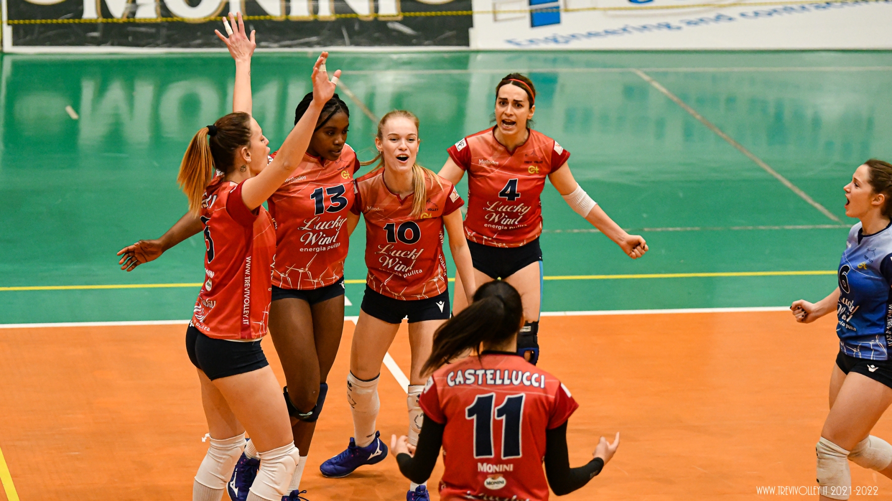 Lucky Wind Trevi: Borelli 5, Ameri 4, Tiberi 8, Lillacci (L), Pioli 2, Giordano 3, Castellucci 19, Bosi, Ndulue 7, Coresi, Pizzi. all. Gian Paolo Sperandio, 2° all. Albino Bosi