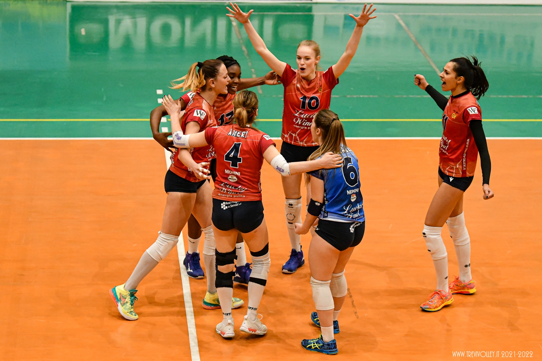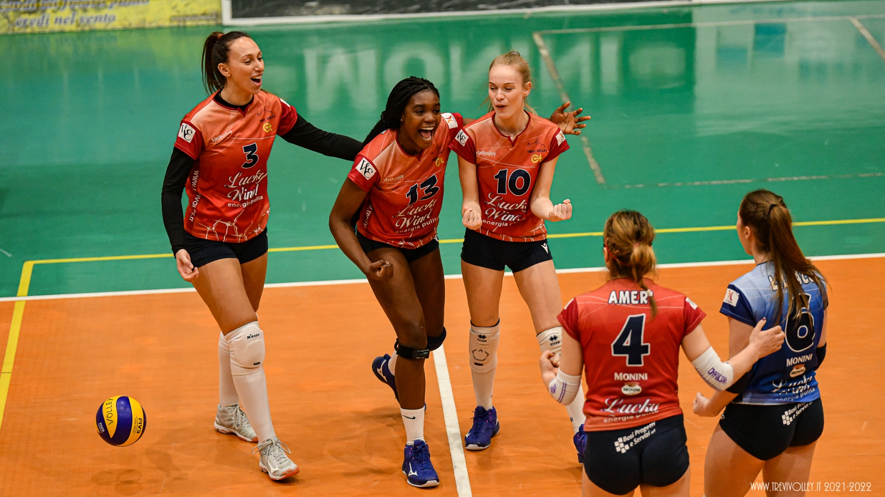 Lucky Wind Trevi: Borelli 5, Ameri 4, Tiberi 8, Lillacci (L), Pioli 2, Giordano 3, Castellucci 19, Bosi, Ndulue 7, Coresi, Pizzi. all. Gian Paolo Sperandio, 2° all. Albino Bosi