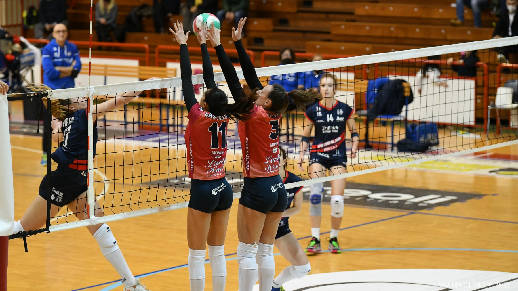 Nella 18° giornata del campionato di serie B1, una bella Lucky Wind Trevi espugna il sempre ostico campo della Pieralisi Jesi per 3 a 1 e si avvicina a -3 punti dal 2° posto con una partita in meno rispetto a Castelfranco. E’ stata una partita per 2 set e mezzo comandati da una concentrata e lucida Trevi che, al momento di chiudere la contesa si è bloccata prolungando il match fino al quarto set. Le bocche di fuoco dell’attacco trevano hanno confermato il loro ottimo stato di forma mettendo a referto 40 punti complessivi (18 Ndulue e 21 Castellucci). Oltre alle bocche di fuoco, da riportare i servizi sempre efficienti ed efficaci della Giordano e di una difesa a tratti impeccabili supportata da un’ottima, come sempre, Alessia Ameri che in fase difensiva si dimostra sempre affidabile e di un’altra categoria. Nel primo set, c’è subito un tentativo di allungo di Trevi che, sfruttando l’ottimo servizio della Giordano, si porta rapidamente sul 3 a 0 dando subito l’impressione di voler portare l’inerzia della partita dalla sua parte. Le ragazze di casa non ci stanno a questo copione e mano a mano che la partita procede riescono a ricucire lo strappo fino al punto del pareggio del 12 a 12. La svolta del set si ha sul 19- 18 Trevi, quando al servizio si presenta nuovamente Giordano che con 4 battute di seguito porta avanti le umbre fino al 23-18. In questi 4 punti da segnalare un muro della Tiberi (per lei alla fine saranno 11 i punti conquistati), un attacco della Castellucci e 2 ace “sporchi” della stessa Giordano (7 i punti a referto al servizio per lei). Con un attacco della Tiberi dal centro finisce il set a favore delle ospiti per 25- 19. Alla ripresa del gioco, nuova fuga delle ragazze di coach Sperandio che, sfruttando sempre la Giordano al servizio, allungano fino al 5 a 0. Come nel primo set, la Pieralisi cerca di ricucire lo svantaggio, ma, questa volta, le ragazze ospiti non si fanno sorprendere e portano a casa rapidamente il set per 25- 16. Nel terzo set, la partita si fa equilibrata, anche perché Jesi cerca in tutti i modi di allungare la partita. Lo strappo che potrebbe risultare decisivo per il set e per la partita lo porta Trevi che, dal 7 a 7 si porta avanti fino al 20-13. In questa porzione di set da segnalare, tra gli altri, un ace della Borelli, un muro della Tiberi e uno di Ndulue, dopo un azione prolungata e sempre guidata da Jesi. Con il servizio della Giordano, la partita si porta al 24-16 ed il pubblico inizia ad alzarsi per andare a casa: ma non ha fatto i conti con l’imprevedibilità del Volley. L’imprevedibilità che si mostra quando alla battuta va la Bazzani ed all’improvviso la Pieralisi non sbaglia un azione, capendo sempre la porzione di campo dove mettere giù la palla. Mano a mano che il divario diminuisce, nel campo trevano sale l’ansia dal non riuscire a chiudere l’incontro, ogni pallone usa un macigno e la squadra va in affanno. Con il servizio efficiente ed efficace della Bazzani, Jesi raggiunge la parità sul 24 pari. A questo punto con l’entusiasmo alle stelle delle jesine e con il supporto del pubblico di casa, le padroni di casa vincono il set ai vantaggi per 28- 26. Il quarto set vede l’euforia della squadra di coach Sabbatini sfruttare l’inerzia della partita guidando il set avanti per 2 punti e, con Trevi che arranca affidandosi alle buone difese della Ameri. Il vantaggio jesino dura fino al 14 pari, quando con un attacco di Princess Ndulue, Trevi si porta avanti sul 16-14 e sembra scrollarsi di dosso le scorie prodotte dal set precedente. Trevi inizia a macinare il suo solito bel gioco e riesce a portare a casa set e match per 25 a 22. Nel primo fine settimana di marzo il calendario prevede il big match al PalaGalinella tra la Lucky Wind e Perugia, attuale capolista del campionato, per continuare a sognare in grande, mentre la Pieralisi Jesi avrà la difficile trasferta di Castelfranco, seconda in graduatoria.