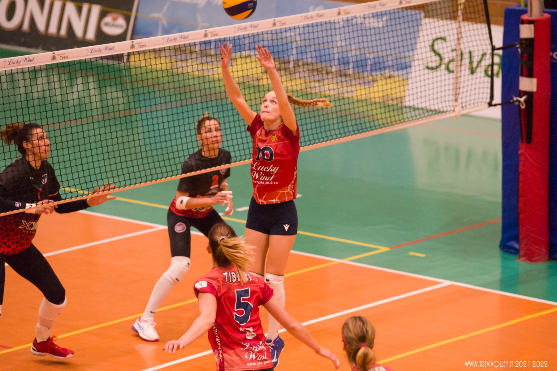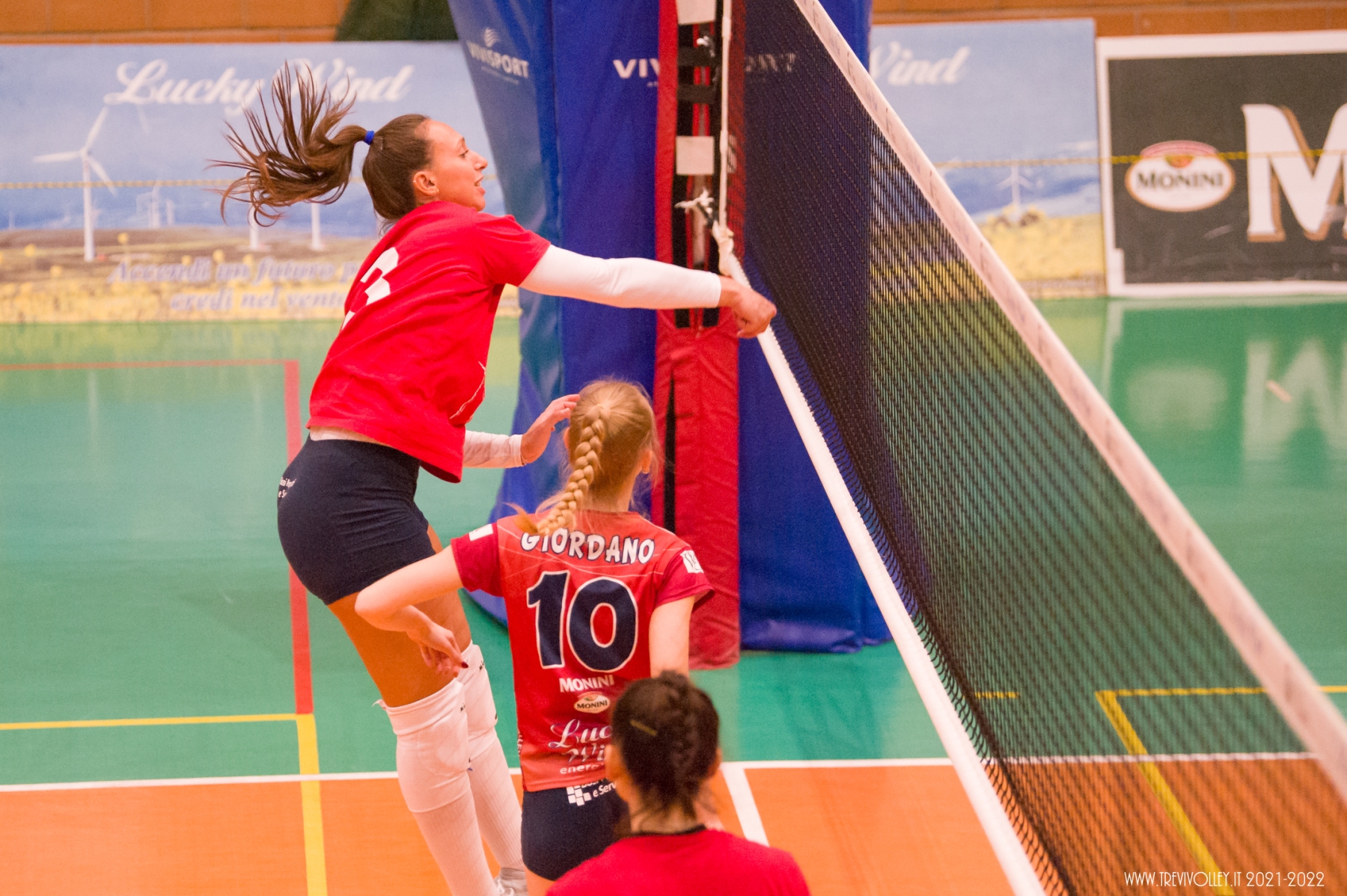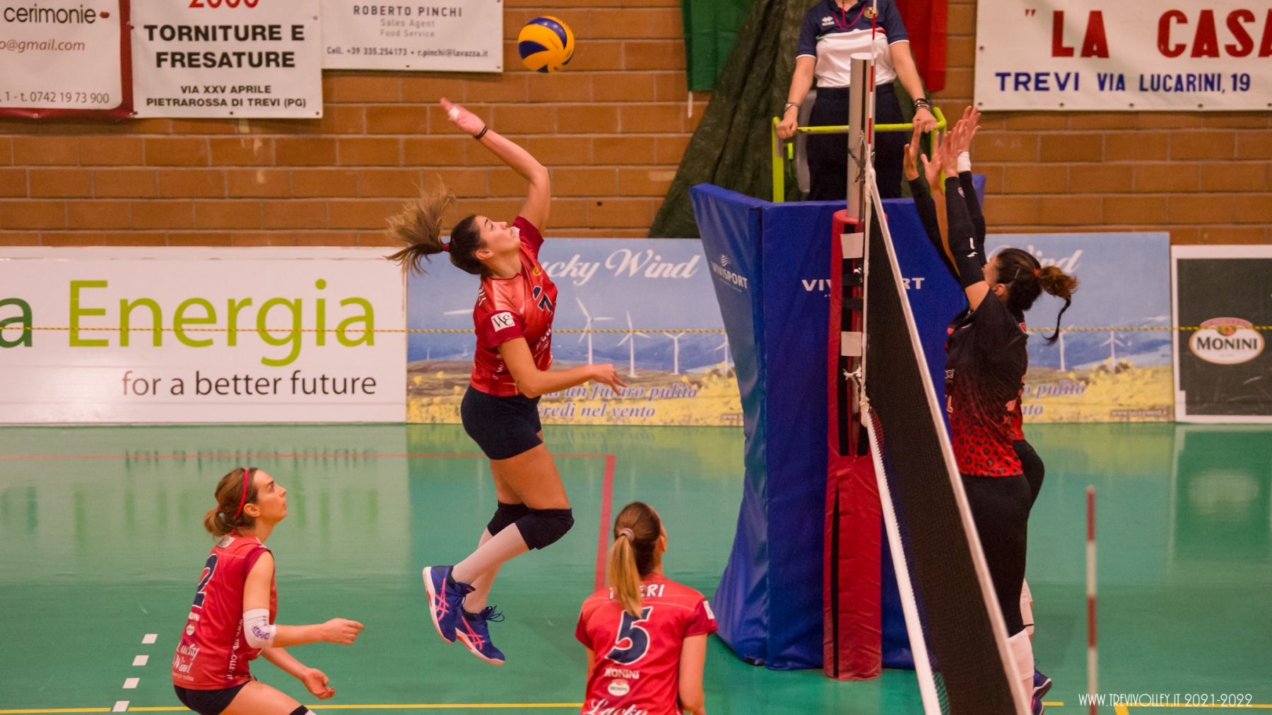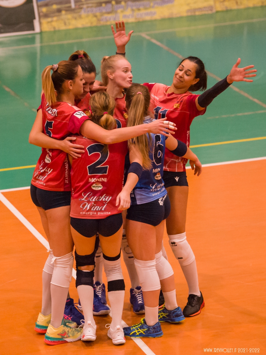 “Sarà una battiglia” queste sono state le affermazioni di Mister Sperandio alla vigilia della partita. Parole che descrivono nel miglior dei modi il match della 3° giornata di campionato della Lucky Wind Trevi  contro la United Pomezia andata in scena sabato al PalaGalinella. Due ore di partita dove  i colpi di scena non sono mancati, ma al contrario di quanto successo a Chieti, le ragazze di Sperandio sono uscite dal campo con un punto che fa comunque muovere la classifica. Il sestetto di partenza per la Lucky Wind prevede la novità Ameri al posto di Pioli in posto 4. Gli altri interpreti sono confermati: Giordano in palleggio   capitan Capezzali opposto, Tiberi e Borelli centrali, Castellucci sull’ ala e Lillacci libero. Nel primo set, la partita è equilibrata, i tentativi di allungo di entrambe le squadre vengono subiti bloccati, fino al 16- 14 per Trevi quando, con Capezzali al servizio prima, e Ameri al successivo turno di servizio, le trevane allungano al 23 – 17 per concludere il set sul 25 a 18. L’inizio del secondo set è la fotocopia del primo set, fino al 10 pari. Da quel momento con Tiberi in servizio e con un muro della Capezzali si arriva al 17- 12 Trevi. I 5 punti di vantaggio sono tenuti fino al 23- 18, quando, primo colpo di scena della partita, le ragazze ospiti mettono 7 punti di fila arrivando al 24- 23. Trevi si desta e si arriva ai vantaggi dove a tagliare il traguardo del set è la squadra di Pomezia (29- 27). A questo punto l’inerzia dell’incontro è tutta da parte di Pomezia che lo sfrutta portandosi avanti fin dalle prime battute del terzo set, allungando verso metà set (15 a 10) per chiudere  25 a 19. Le ragazze di casa non ci stanno a lasciare l’intera posta in palio alle ragazze laziali e guidati da capitan Capezzali in giornata di grazia, si riscattano del terzo set, vincendo 25 a 18 il quarto e portando la partita al tie break. Nel tie- break Pomezia non si lascia sfuggire la possibilità di portare a casa due punti vincendo il set decisivo 15 a 9.Le ragazze di coach Sperandio si potranno riscattare nel prossimo fine settimana  a Moie contro Castelbellino, anch’esso in cerca di una rivincita dopo la sconfitta patita in trasferta contro Jesi.