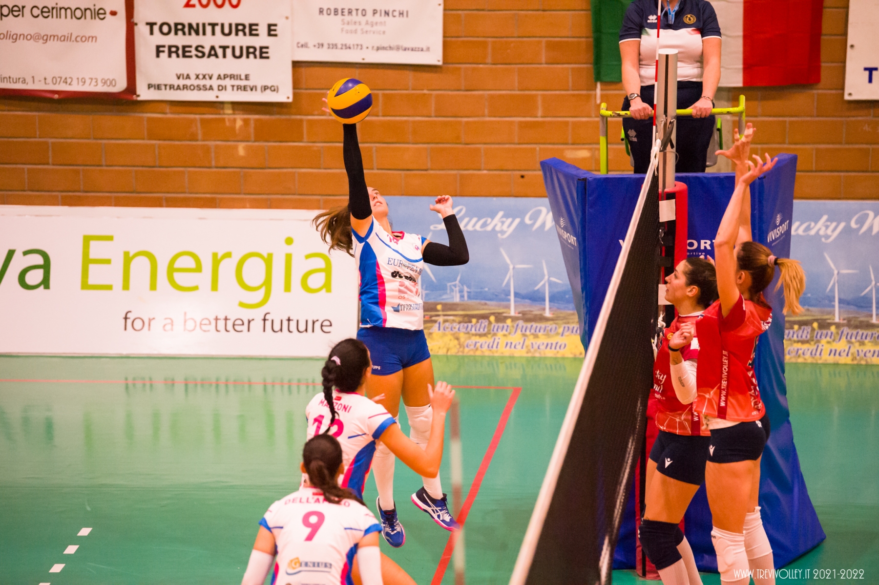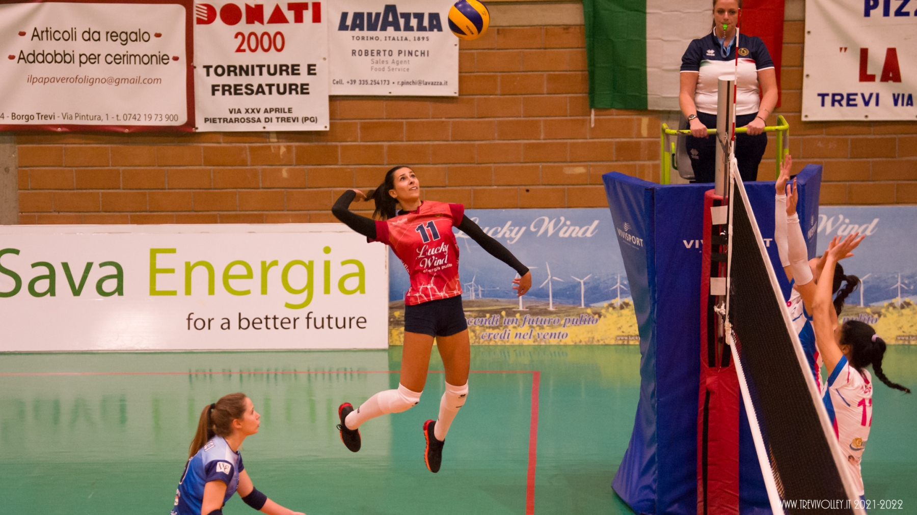 Davanti ad un palazzetto gremito di tifosi, è andata in scena la prima della Lucky Wind Trevi per la stagione 2021- 2022 contro la Europea 92 Isernia.Ed è stato un esordio positivo per Trevi che ha fatto vedere una buona pallavolo ed è riuscita fin da subito a trascinare il pubblico meritandosi gli scroscianti applausi finali dai propri tifosi. Mister Sperando conferma il sestetto visto negli ultimi allenamenti congiunti: Giordano in palleggio, capitan Capezzali opposto, Tiberi e Borelli centrali, Castellucci e Pioli sulle ali e Lillacci libero. Il primo set ha visto le padroni di casa andare avanti nel punteggio fin dalle prime battute e difendersi bene dai tentativi di recupero delle avversarie (25 a 19). Nel secondo set, il match ha visto, dopo un allungo in avvio della squadra di Trevi e la reazione della squadra ospite fino a portarsi avanti 21 a 19, la rimonta di Capezzali e compagne con la vittoria ai vantaggi 26 a 24. Il terzo set ha visto il punteggio sempre in equilibrio fino al 21 a 20 per la squadra di Isernia, quando, dopo un time out ordinato da Mister Sperandio, le ragazze trevane hanno ripreso il filo del gioco e si sono imposte per 25 a 22. Dopo questo buon debutto, la Lucky Wind è attesa dalla trasferta a Chieti contro la connetti.it che proverà a riscattarsi dopo la sconfitta patita in quel di Perugia. Appuntamento per sabato prossimo, 23 ottobre, alle ore 17:00.