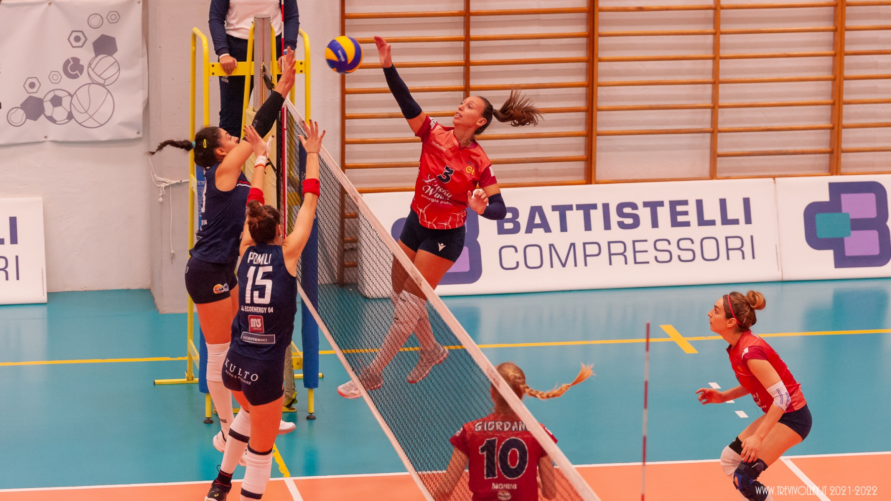 Colpaccio della Lucky Wind Trevi nella sua seconda trasferta stagionale: le ragazze di coach Sperandio sono andate a vincere 3 a 0 a Moie contro la Battistelli- Termofoglia. Partita che ha dimostrato una crescita nell’organizzazione di gioco e personale, limitando al minimo i passaggi a vuoto. Considerato il palazzetto “infuocato” e lo spessore della squadra avversaria, la prestazione della banda trevana è una prestazione di sostanza che fa ben sperare per il futuro e, nel breve termine, fa rimanere a 3 le distanze che separano la Lucky dalla vetta della classifica. Se contro Pomezia capitan Capezzali aveva preso su di sé la squadra portandola al tre break, oggi non possiamo non citare Alessia Castellucci come la vera mattatrice di giornata dimostrando tutto il suo valore, realizzando 18 punti complessivi. La partita era iniziata con il consueto sestetto schierato da mister Sperandio: Giordano in palleggio, capitan Capezzali opposto, Tiberi e Borelli centrali, Castellucci e Ameri sulle ali e Lillacci libero. Il primo set si caratterizza subito da un avvio importante della squadra di casa che si porta avanti 4 a 0. Immediatamente c’è la risposta di Trevi che sul turno di servizio di Giordano annulla la fuga ristabilendo la parità. Poi è la volta della Lucky tentare la fuga: tra i turni a servizio della Castellucci e della Tiberi si arriva al 12 a 7. Ma anche questa fuga viene rintuzzata per la buona reazione della squadra di Moie che raggiunge la parità (12- 12). Si va avanti di punto a punto, fino a quando, ancora sui turni di servizio della Giordano, prima, e della Tiberi, poi, la Lucky allunga al 23- 18. Con due errori finali della Battistelli, la squadra ospite si aggiudica il primo parziale per 25-20. Nel secondo set, la partita diventa ancora più equilibrata rispetto al primo parziale e si arriva punto a punto fino al 19 a 17 Battistelli, quando con la Ameri in turno di servizio, Trevi inserisce 5 punti di fila andando avanti 21 a 19. Sul 23 a 21 Trevi, sono i punti pesanti della Castellucci a decretare la fine del parziale e portare avanti le ospiti per 2 set a 0 (25-21). Nel terzo set si combatte punto a punto con Castellucci che continua il suo show e saranno 9 i punti a referto solo per questo set. Gli strappi decisivi si hanno con Borelli al servizio che vede Trevi portarsi da 17- 16 a 20- 17 e con Castellucci dove, con il suo servizio, porta Trevi a Match ball. Con il punto finale di capitan Capezzali la Lucky si aggiudica la partita per 25 a 22. Dopo questa iniezione di fiducia, si ritorna in palestra per continuare a lavorare e a pensare alla prossima partita contro Volley Casal De’ Pazzi (sabato alle ore 18:00 PalaGalinella).