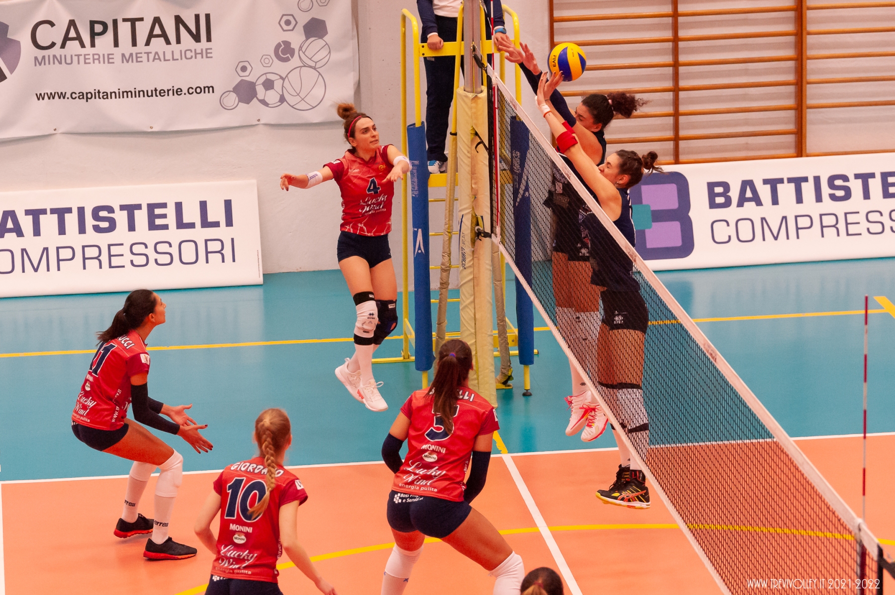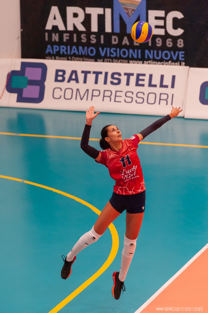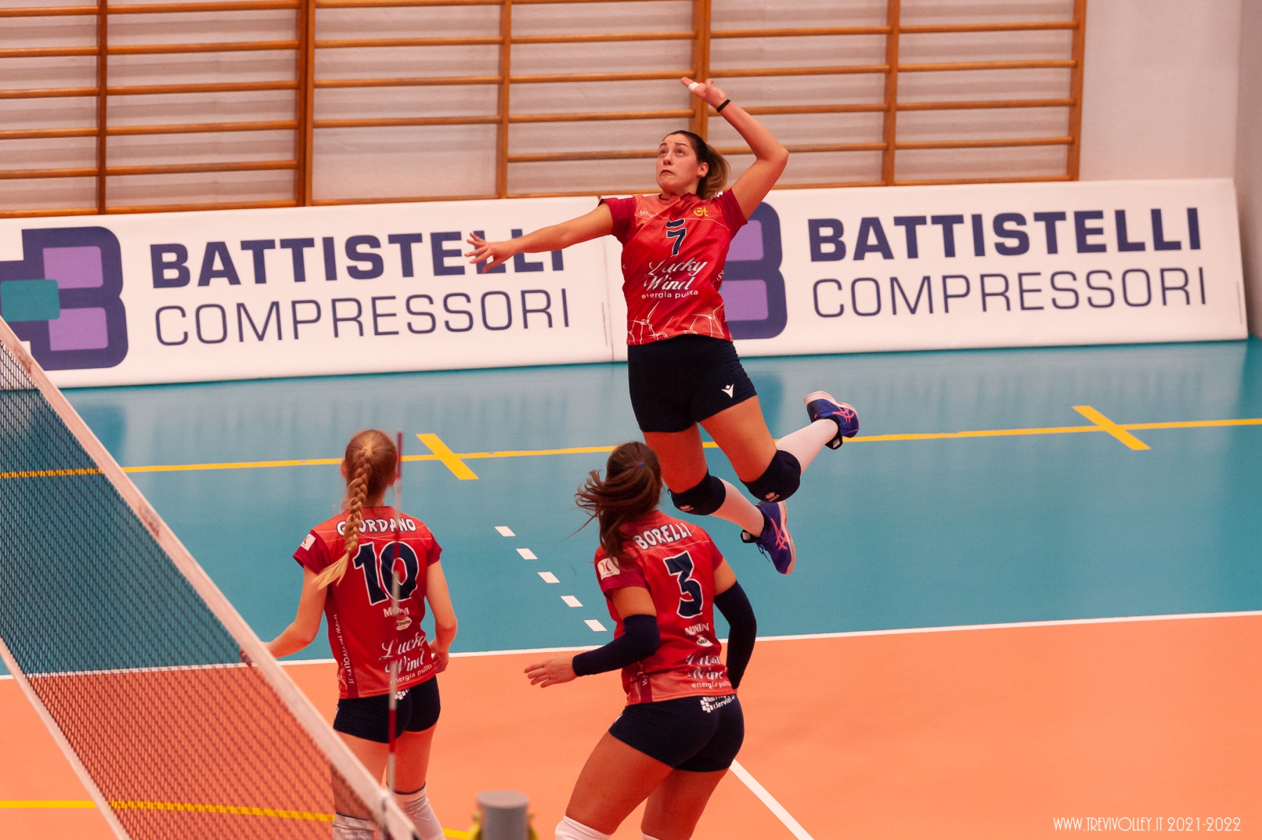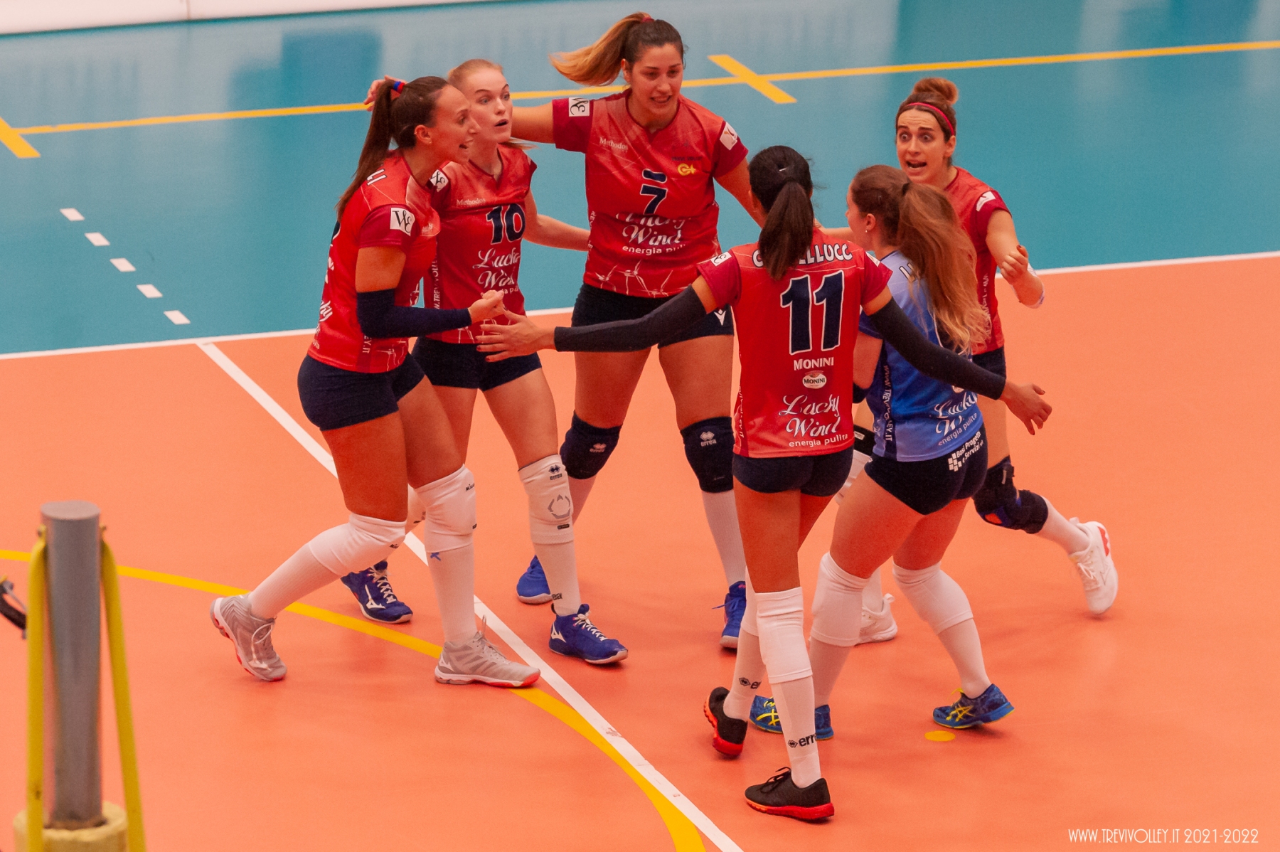 LUCKY WIND TREVI: Radi, Borelli 2, Ameri 10, Tiberi 8, Lillacci (L1), Capezzali 12, Pioli, Giordano 5, Castellucci 18, Bosi, Ndulue, Coresi (L2), Pizzi. all. Gian Paolo Sperandio, 2° all. Albino Bosi
